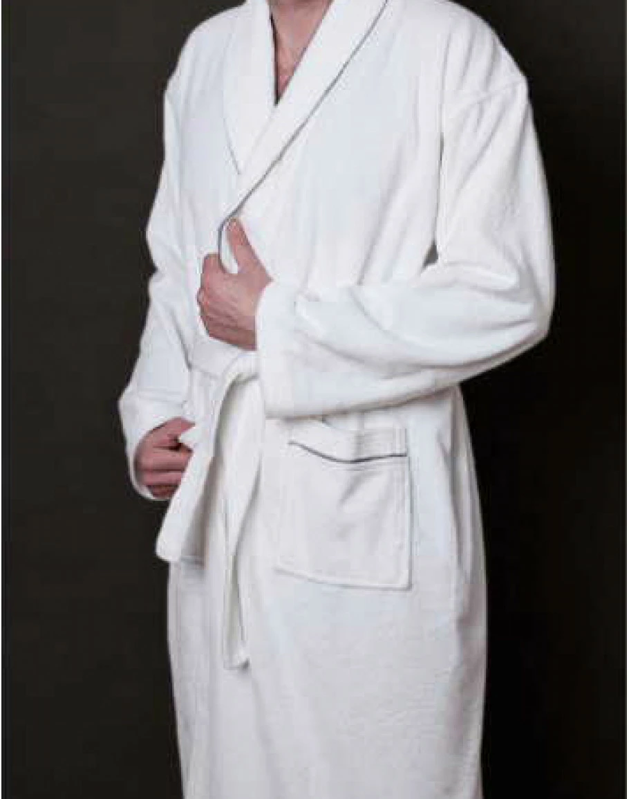 - Белый халат с декоративным и элегантным серым обрамлением